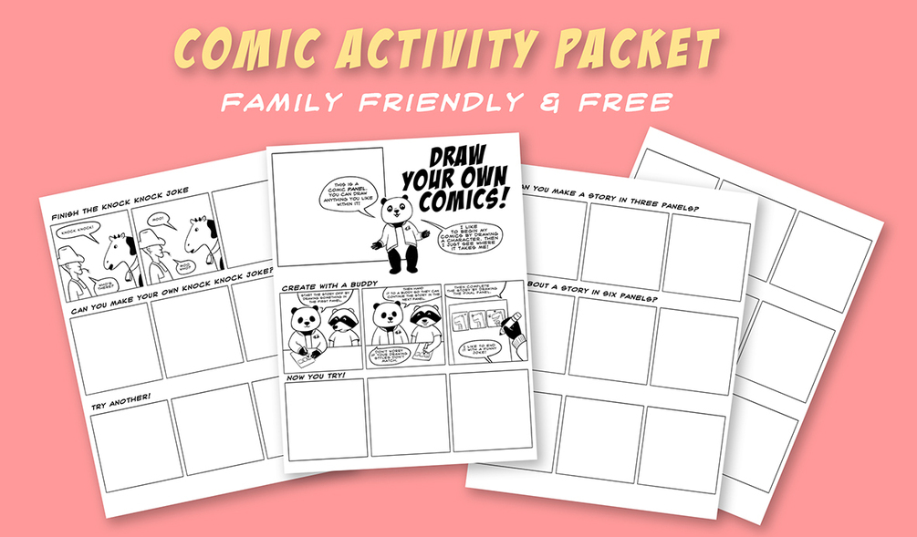 This is a printable packet that offers a couple of fun drawing prompts. Kids can use this, even collaboratively, to make their own stories, knock jokes- whatever they feel like drawing!